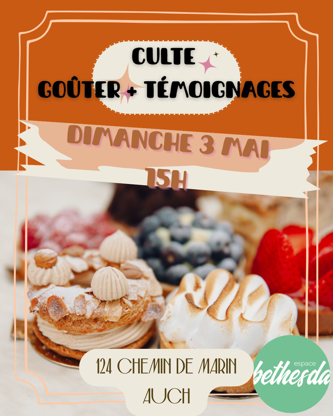 Culte à 15h autour d’un goûter partagé (chacun amène de quoi partager sucré, salé et boissons).